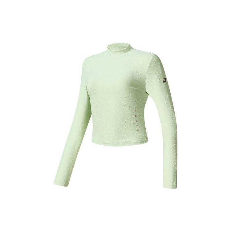 FILA Fitted Short High Neck Solid Color Sports Knit Long Sleeve T-Shirt Women Tops Sprout-Green A11W241211F-LG