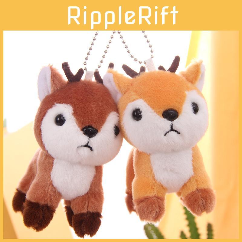 Cute Short Plush Sika Deer Doll With Keyring For Backpack And Gift