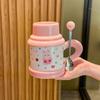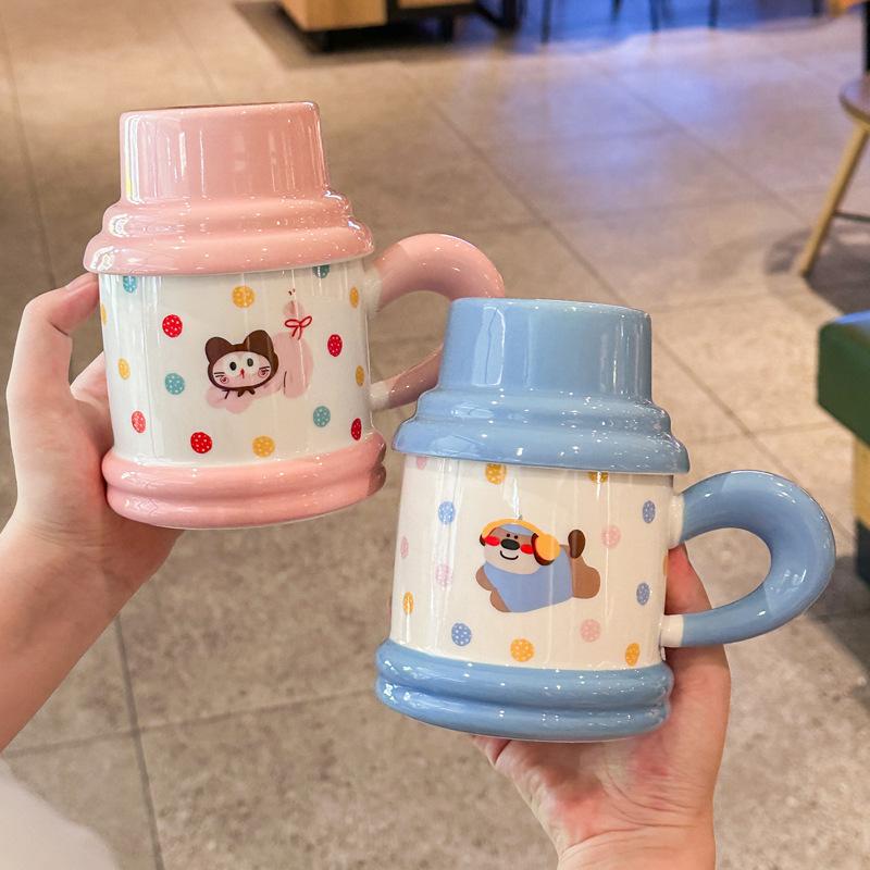 Cute and high-value puppy mug with lid spoon cartoon kitten ceramic cup for girl classmates birthday gift