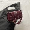 New texture trendy spice girl rivet leopard print personalized design locomotive shoulder crossbody armpit baguette women's bag