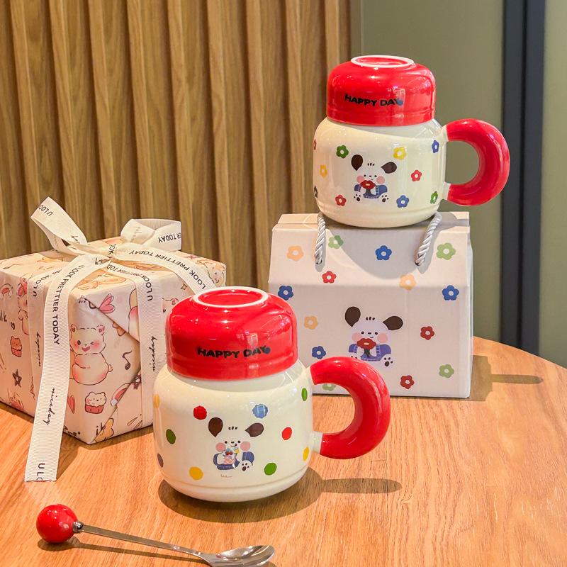 Puppy mug with lid spoon cute girl ceramic cup large capacity kettle household coffee cup