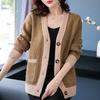 Sweater Coat Women's Loose Korean Style Short Cardigan Contrast Color Tops for Women