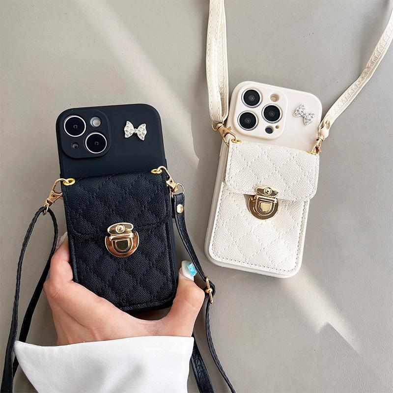 For IPhone17Promax Bow Phone Case for Apple 16 Lock Wallet Fine Hole Anti-fall Crossbody Leather Cord