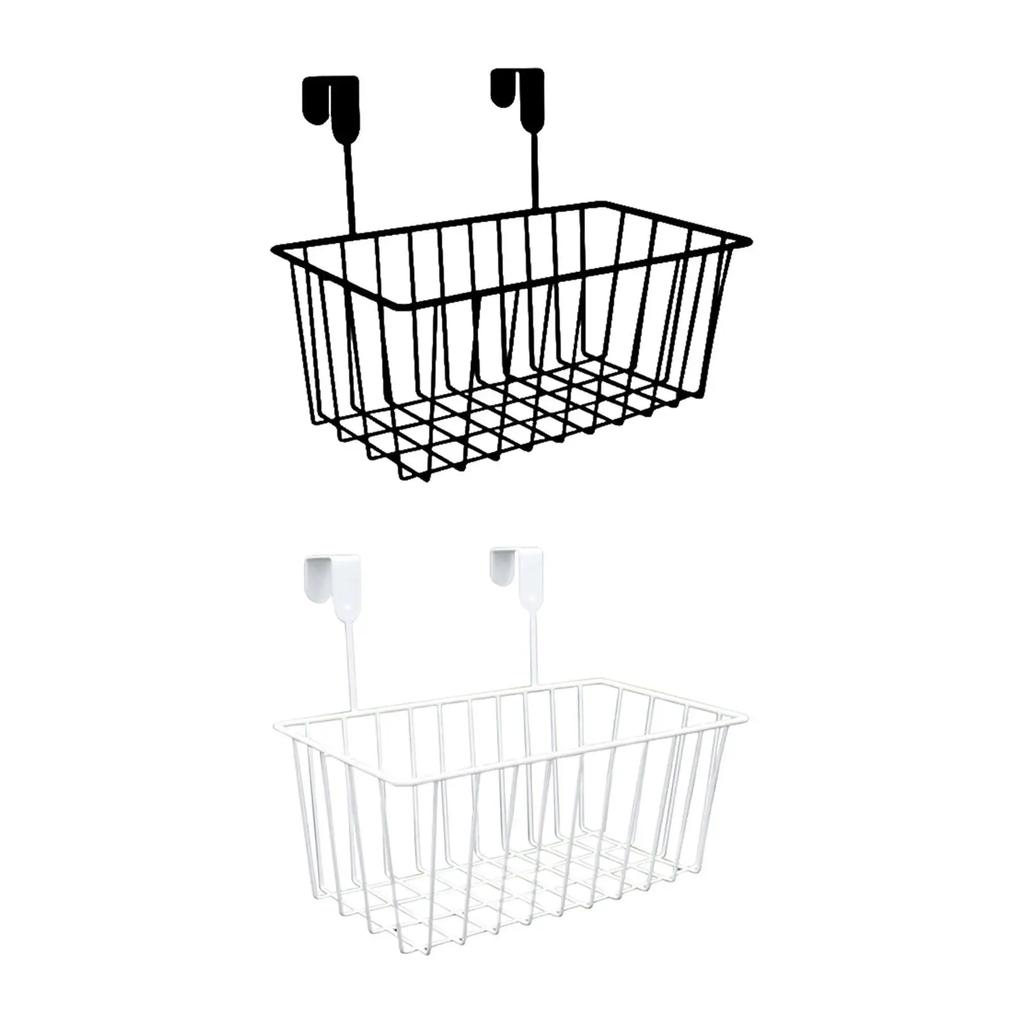 over Cabinet Door Organizer Basket Multifunctional Wire Storage Bins Grid Storage Baskets with Hooks for Dormitory on A Railing