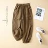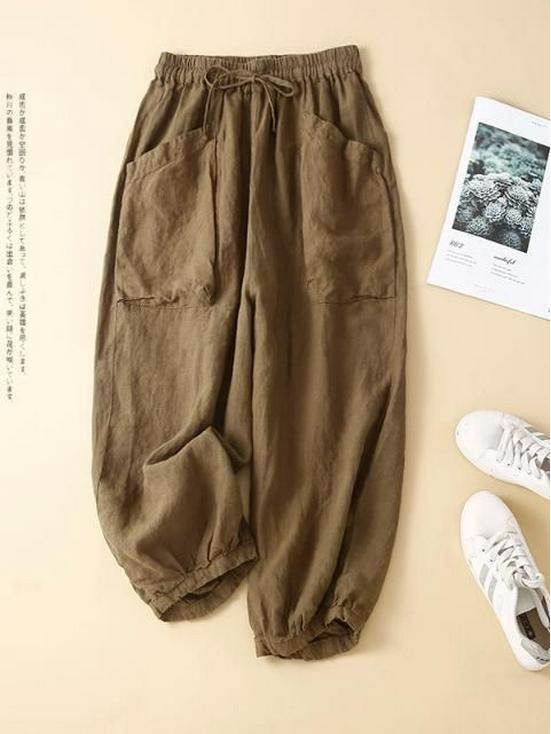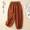 Women's Cotton Linen Harem Pants with Elastic Waist and Pockets