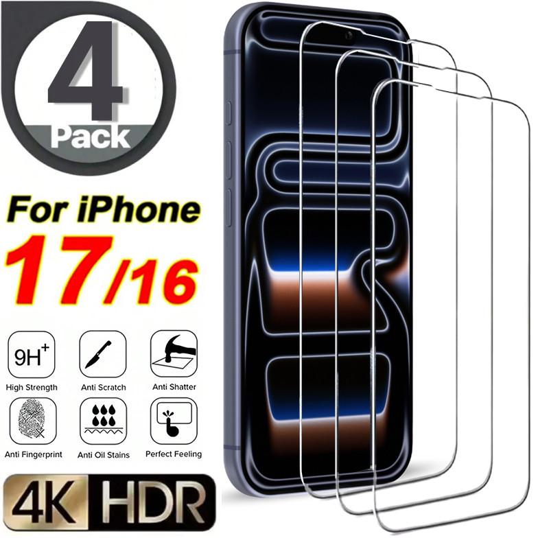 4 Bucăți Sticlă Securizată pentru IPhone 17 16 Pro Max Plus 17Air Protector Ecran pentru iPhone 16Pro 17Pro Folie de Sticlă Protectoare