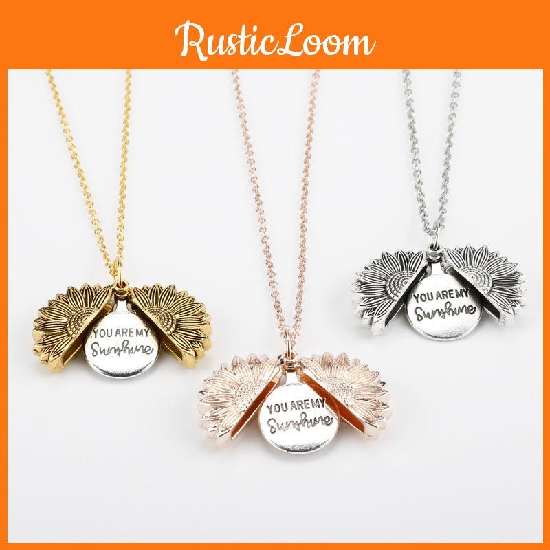Sunflower Double Layer Engraved Pendant Necklace Open Flower Lock For Couples
