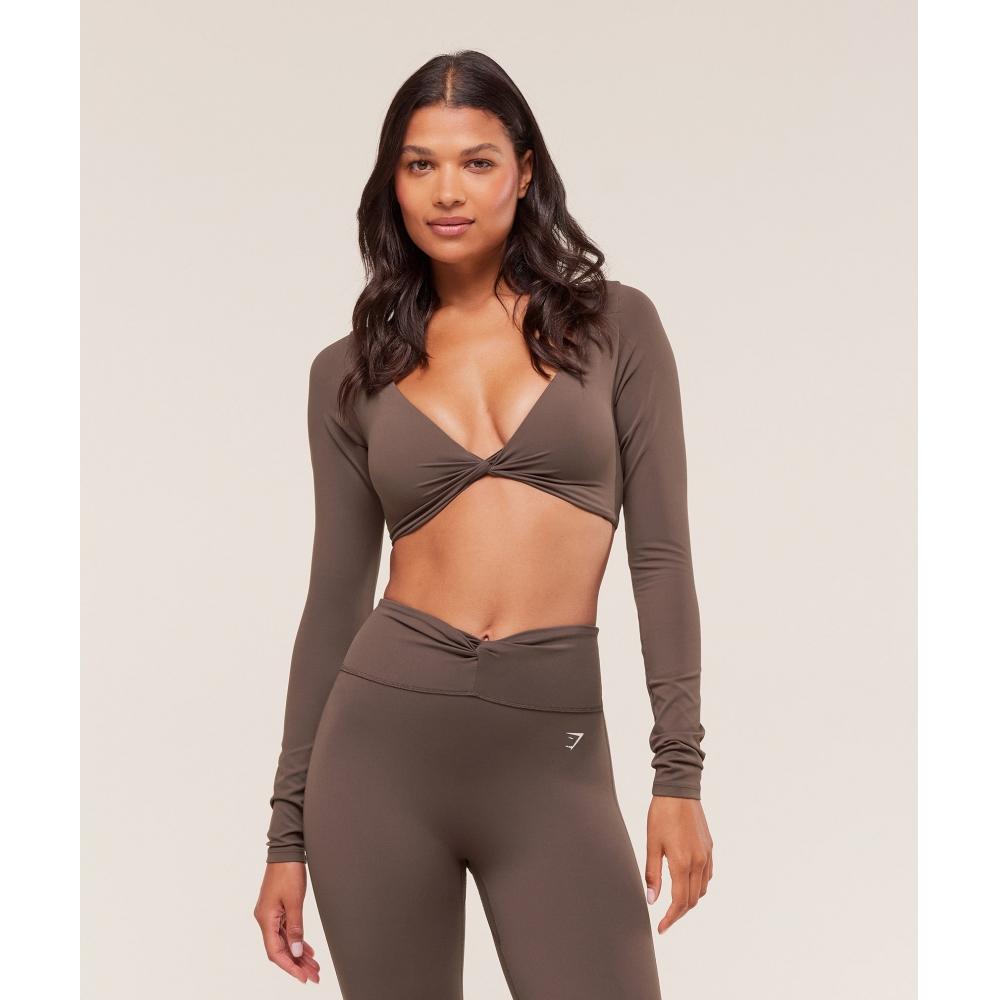 Gymshark Twist Front Long Sleeve Crop Top Walnut Brown B5b4s Nccz