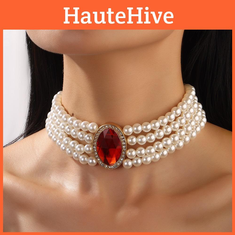 Multi Elegant Palace Layered Simulated Pearl Gemstone Necklace Accessory Neck