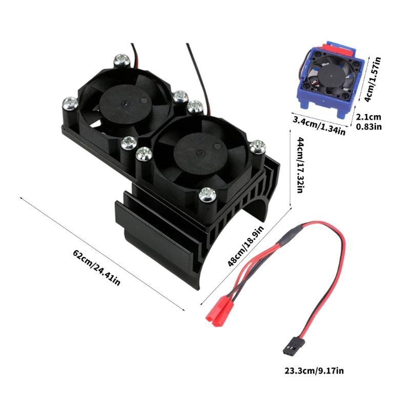 Crafted from light weight aluminum alloy and plastic, this motor heatsink and cooling fan combo delivers rapid heat dissipation, JST connector compatibility, and universally 3.5-3.7cm motor fitment for 1/10 scale vehicle.