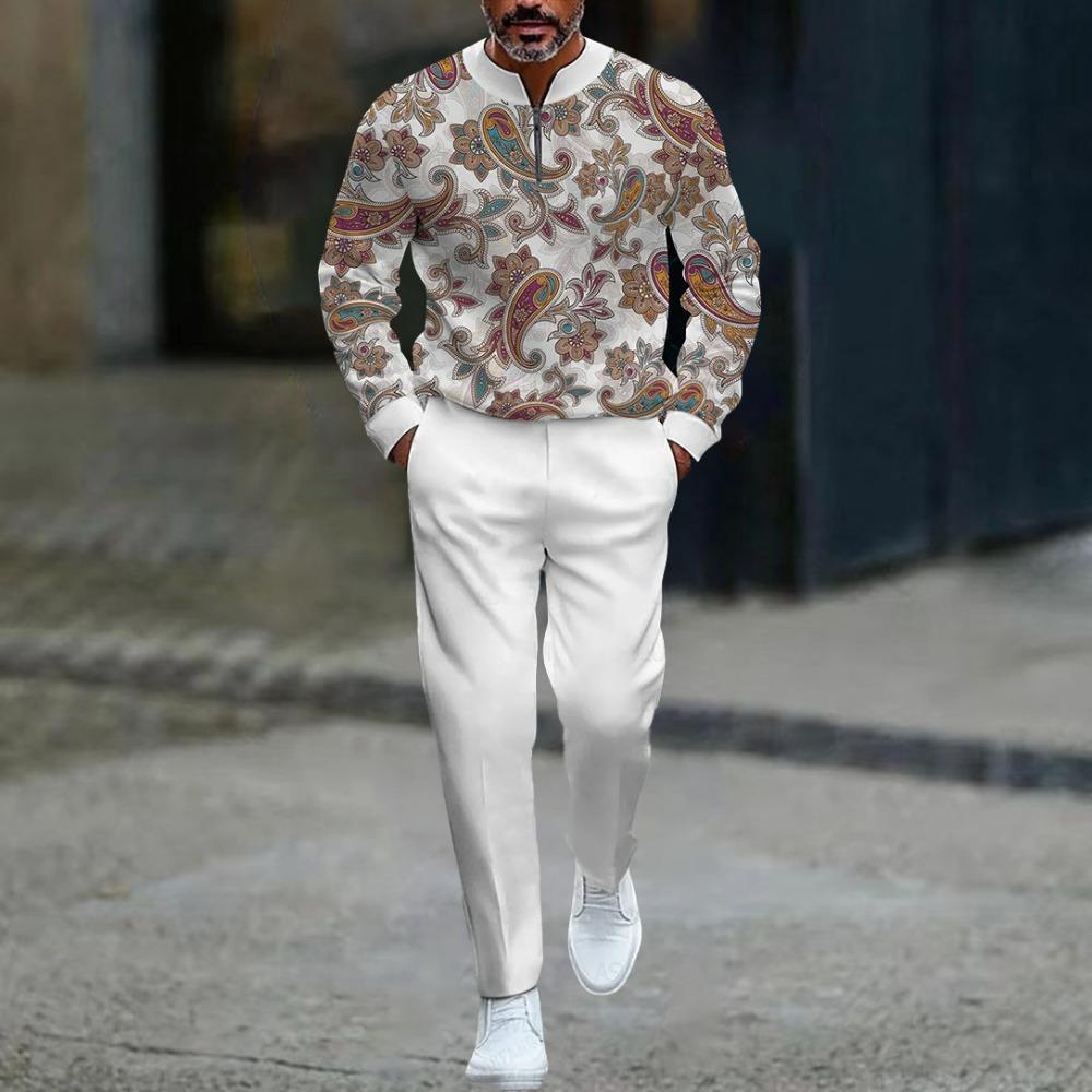 Spring Autumn 3D Printed Fashion Men's Long-Sleeved Sets Half-Zipper Stand-Up Collar Men's Casual Sportswear Two-Piece set