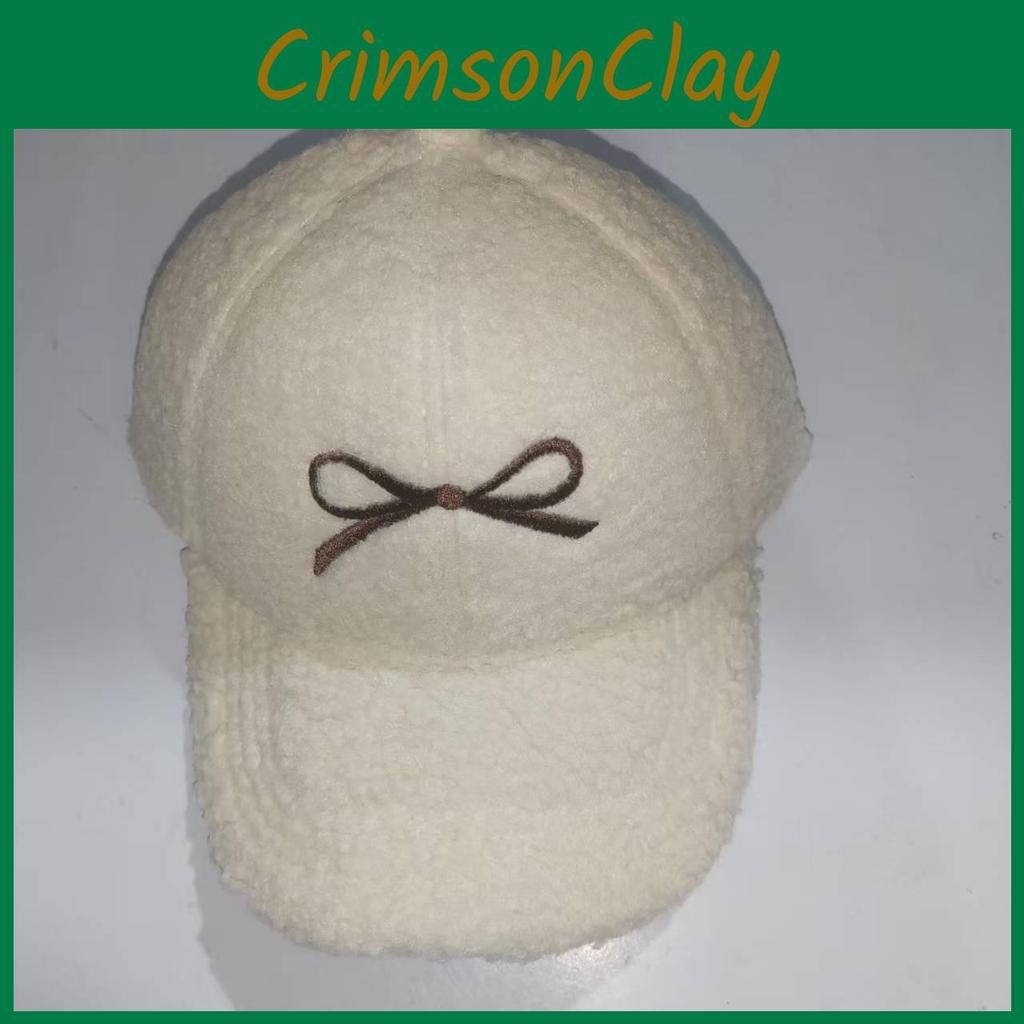 Autumn Winter Womens Fluffy Embroidered Baseball Cap With Bow Detail For Trendy Look