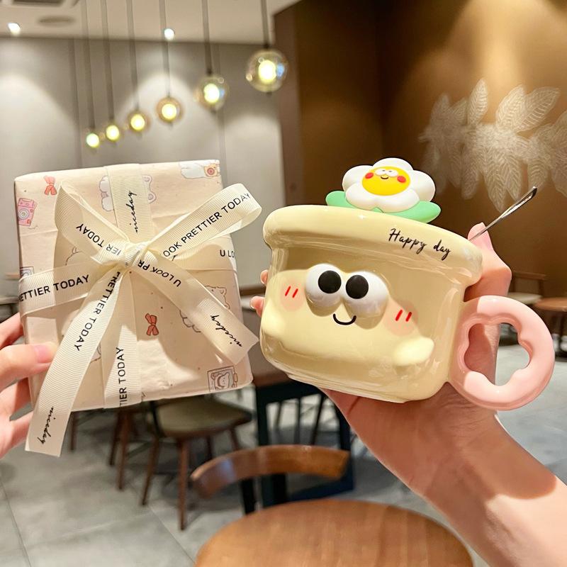 Give girlfriends birthday gifts, cute girls' souvenirs, flower-shaped ceramic mugs with lids, practical gifts
