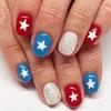24 Pcs French Tip Press On Nail Short Full Cover False Nail 4th of July Stick on Nail Manicures Supplies for Woman