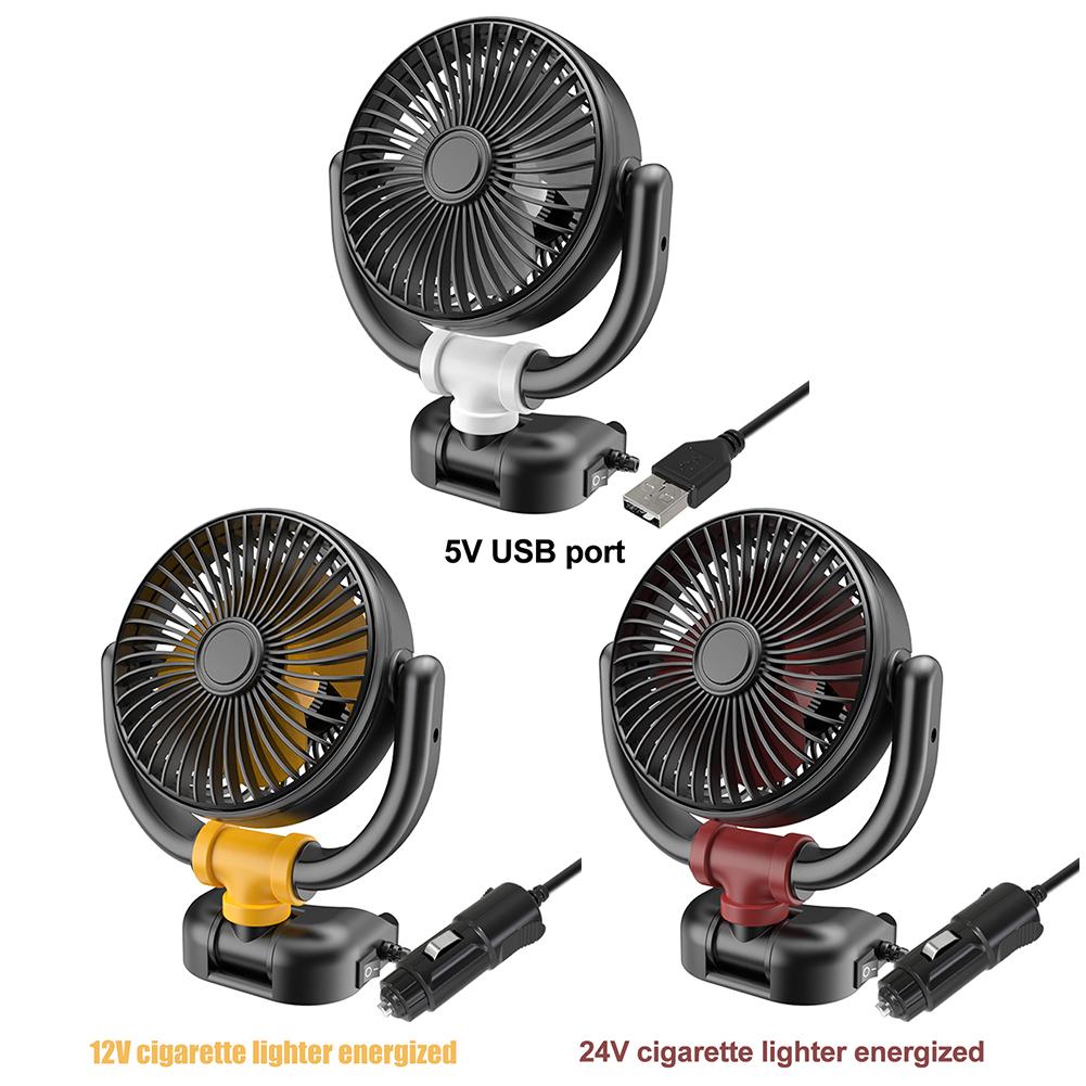 5V/12V/24V Car Cooling Fan 360 Rotation Car Powerful Fan Low Noise Dashboard Air Vent Cooling Fan Folding Summer Car Accessories
