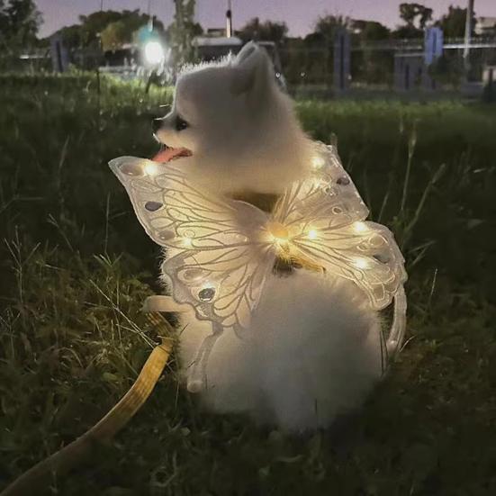 Experimentează un stil încântător cu aceste aripi de fluture, concepute pentru a captiva atenția cu efecte de iluminare fascinante.. Conceput pentru confort, structura ultra-ușoară se mișcă natural cu corpul animalului dvs. de companie, în timp ce o curea reglabilă asigură o fixare sigură în timpul jocului și explorării.. Transformă-ți animalul de companie într-un companion fermecător și elegant, perfect pentru petreceri și evenimente cu costume, făcându-l centrul atenției..