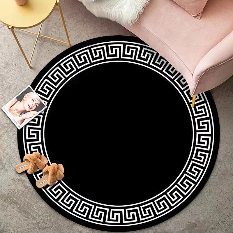Luxury Classical Round Living Room Rug Simple Black White Bedroom Carpet Toilet Washroom Decoration Rugs Comfortable Floor Mats