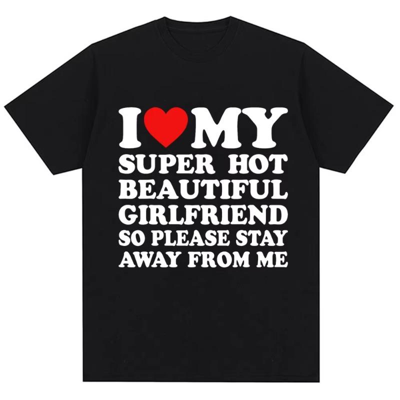 Funny T Shirt I Love My Super Hot Girlfriend So Please Stay Away From Me T-shirt Men Fashion Summer Cotton Couples T Shirts