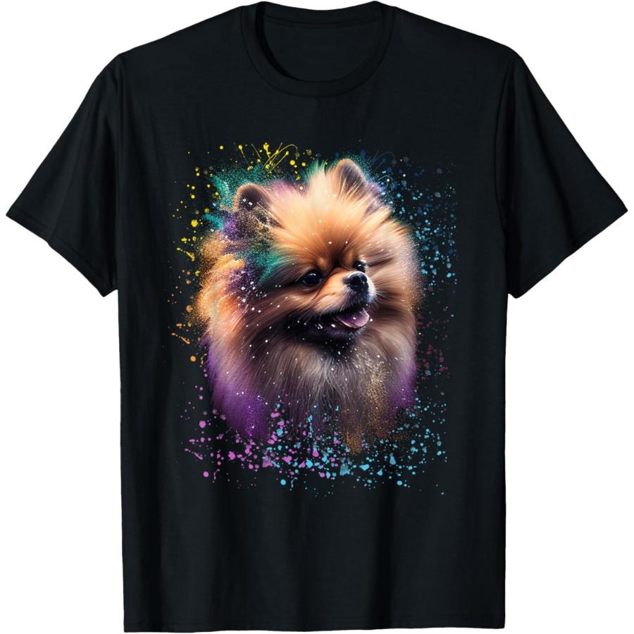 Colorful Splash Art Pomeranian Portrait Puppy Pom Owner T-Shirt