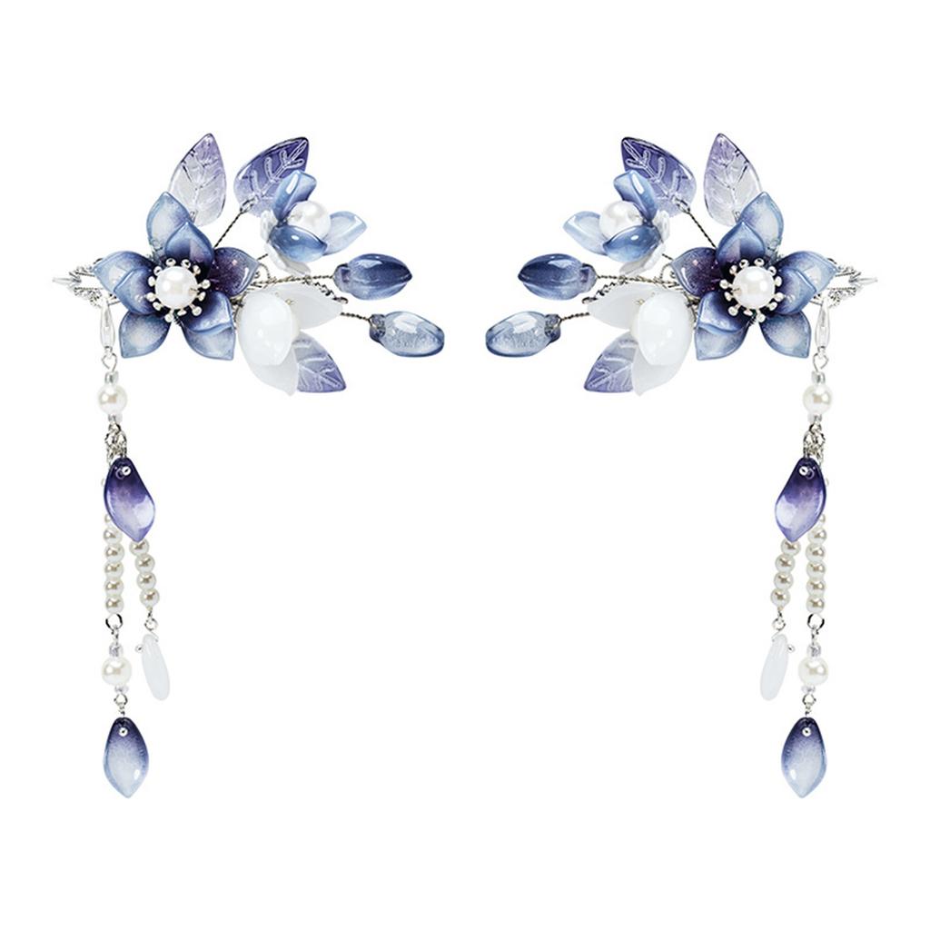 2pcs Chinese Style Tassel Hair Clips Spring Fairy Flower Hairpin For Women Girls Elegant Pearl Glass Hair Clip Hair Accessories