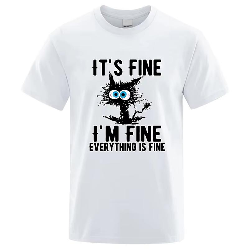 Funny It's Fine I'm Fine Everything Is Fine Cat T Shirt Men Graphic Tee Sarcastic Meme Streetwear Casual Short Sleeve Cotton Top