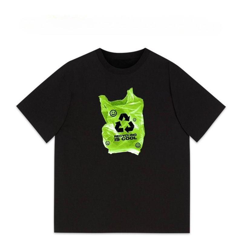 Green Channel Smiling Plastic Bag American Retro Vintage Short-sleeved T-shirt for Women 2025 Loose Half-sleeved for Men Popular