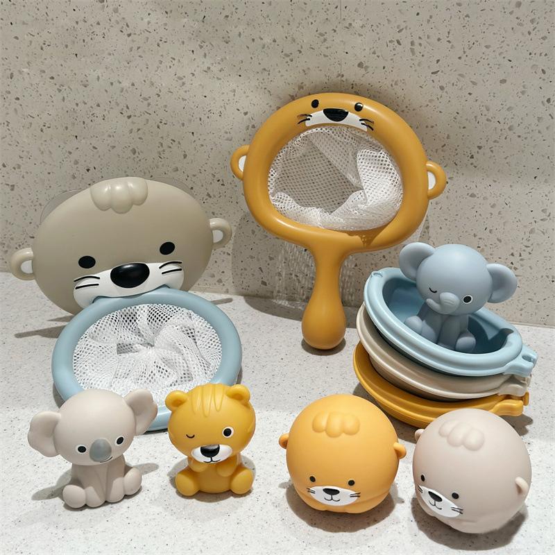 Baby Animal Bath Basketball Hoop Toy Set For Toddlers Floating Baby Bathtub Toys with Balls Net Organizer Game Set For Kids GiftAdorable Animal Design ?