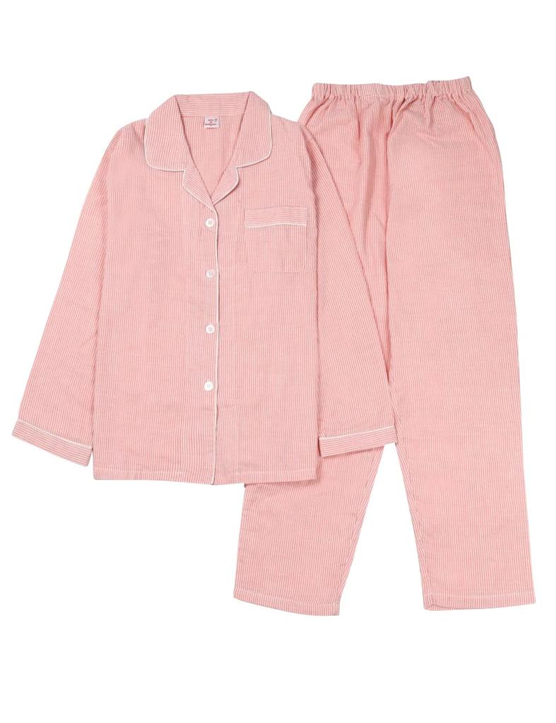 Gifts of Brilliance Gauze Cotton Pinstripe Pajamas Women's [Gift Set] (XL, Pink) PJ_2236