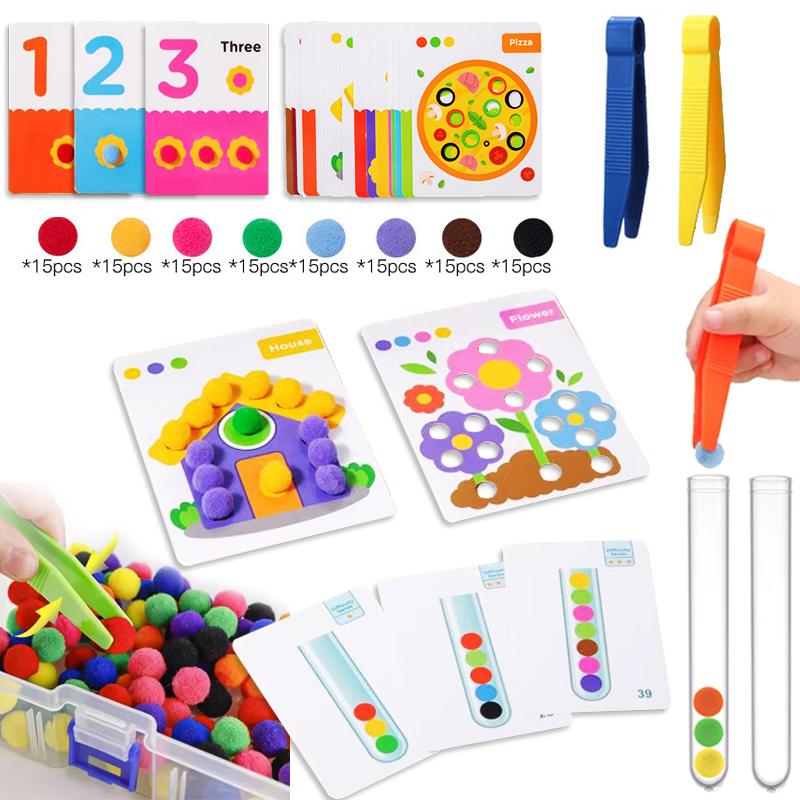Numărând Pompoane cu Cărți de Sortare Potrivite Învățare Matematică Preșcolară Educație STEM Activități de Abilități Motrice Fine Jucării pentru Copii Cadouri