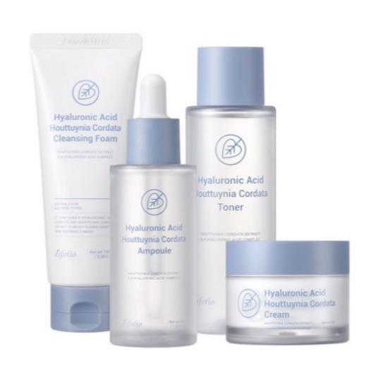 The Esfolio Houttuynia Cordata Basic 4-Piece Set is a soothing and clarifying skincare routine designed for sensitive, acne-prone, and irritated skin. Formulated with Houttuynia Cordata (어성초) extract, it helps calm redness, control excess sebum, and support a healthier skin barrier. With a refreshing toner, concentrated ampoule, balancing cream, and gentle cleansing foam, this set provides an effective daily solution for clearer, calmer, and more balanced skin.