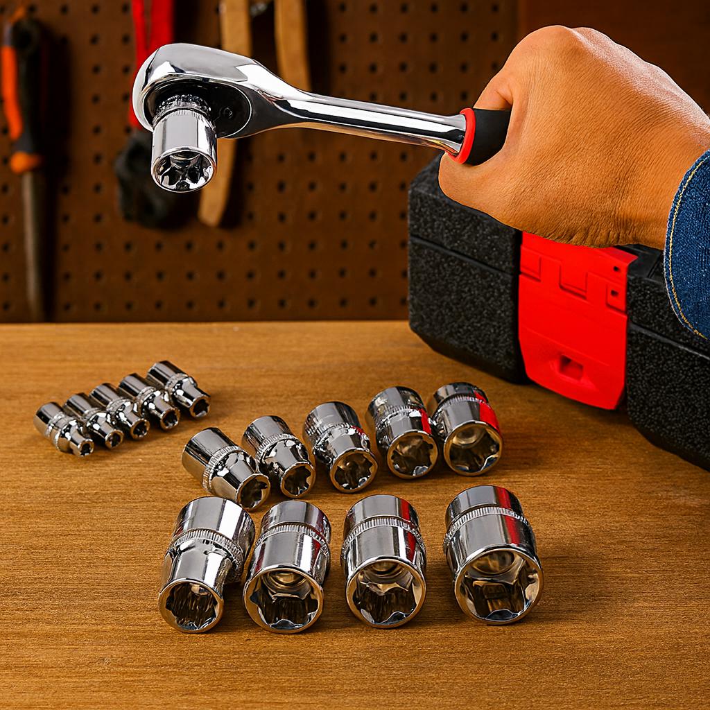 14PCS Female E Star Torx Socket Set, E4-E24 External Hex Sockets, for Auto Repair Mechanics, Durable Versatile Hand Tool Kit