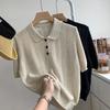Wenyi fan olo shirt knitted short-sleeved women's summer new chic unique texture ice silk top