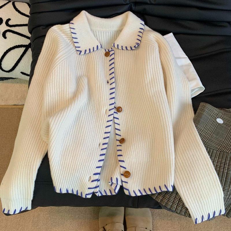 Handmade contrasting color knitted sweater jacket women's autumn new casual loose and thin lazy style versatile top