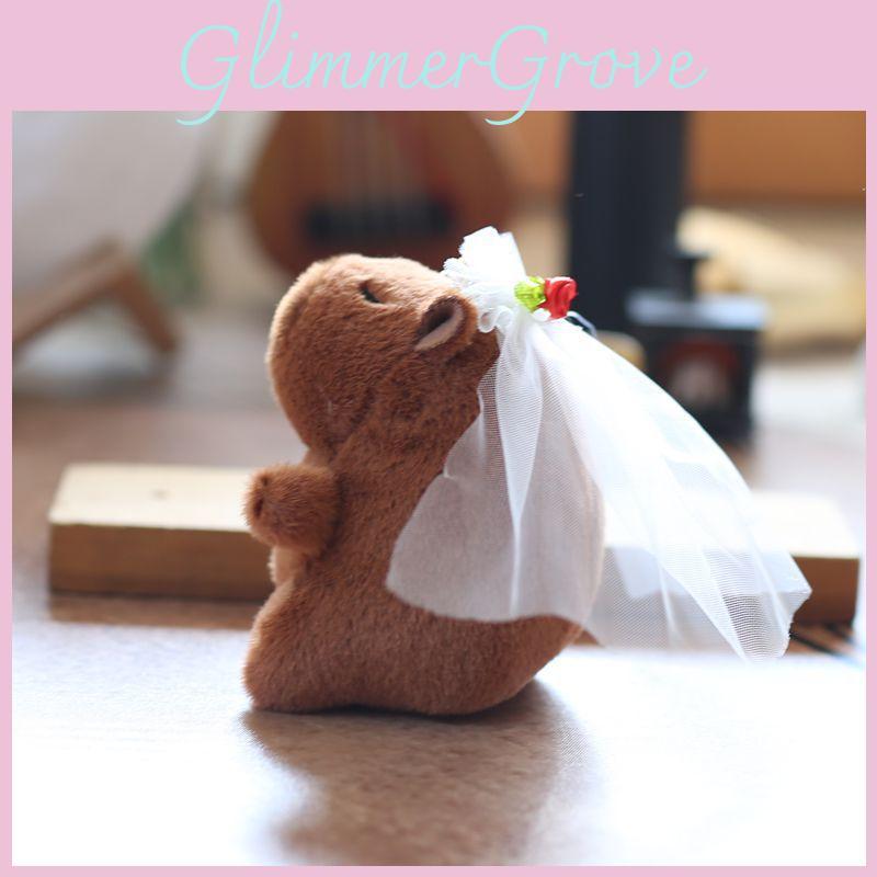 This plush capybara keychain features a cute wedding dress design, crafted from ultra-soft short pile plush and filled with high-quality PP cotton. Measuring 13cm in height, it offers a lightweight and durable accessory for bags, keys, or backpacks. Ideal for daily use or as a charming gift, wipe clean with a damp cloth to maintain its appearance.