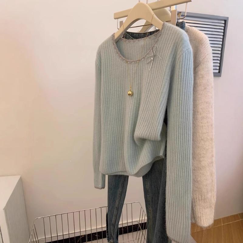 Pullover, round neck temperament knitted sweater, soft waxy sweater for women's autumn new models, small people can wear outside, bottom and inside