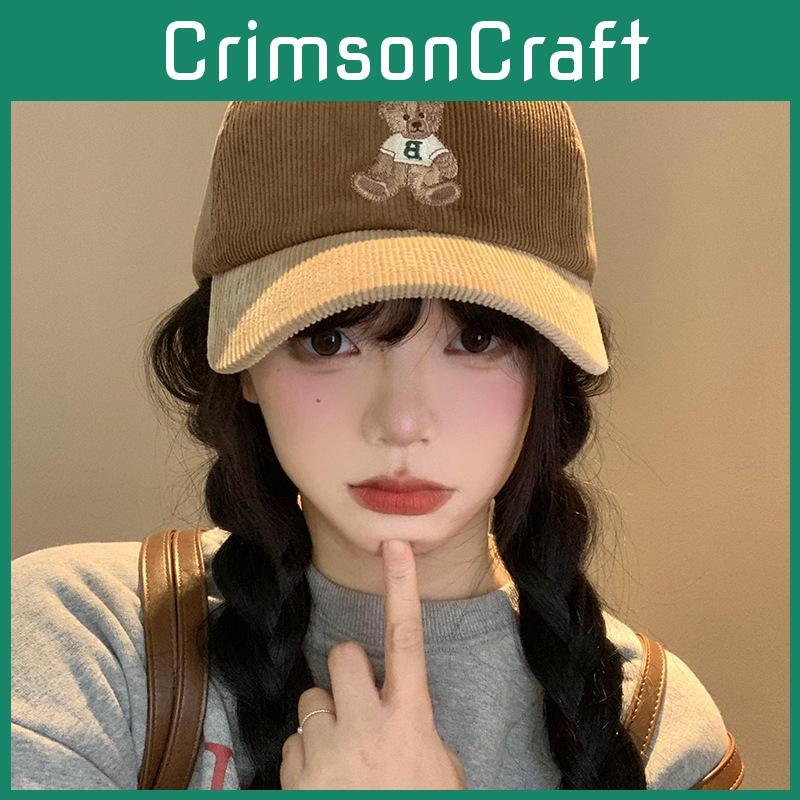 Adorable Corduroy Bear Embroidery Baseball Cap For Women Casual Fall Winter Style