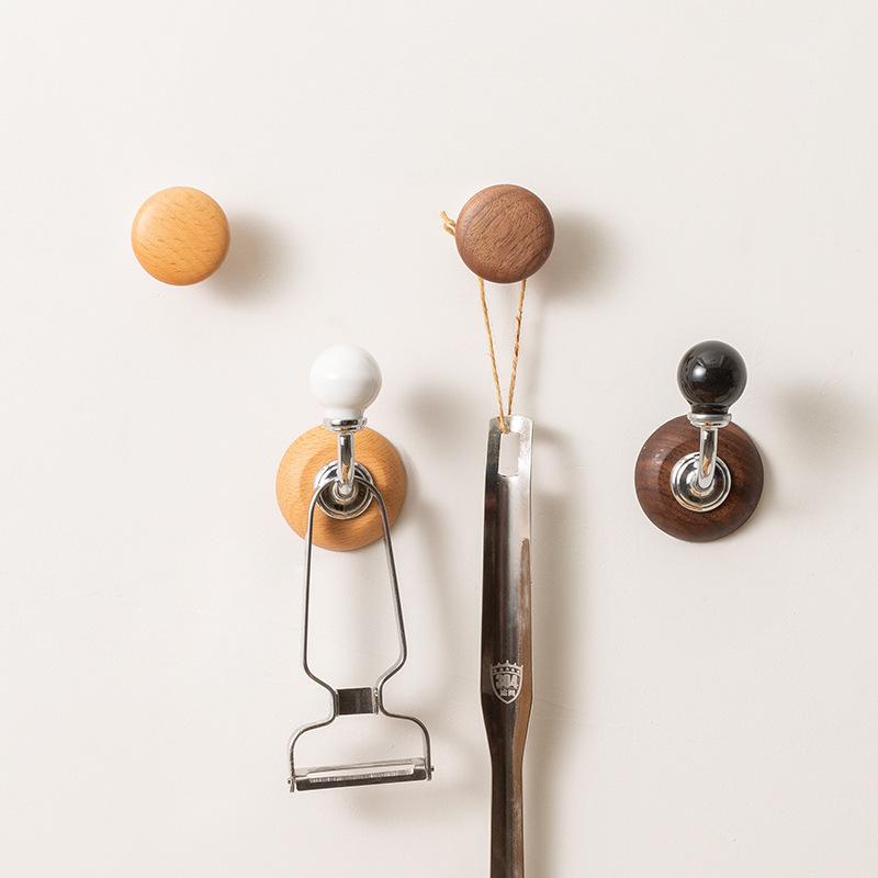 Non-drilling Magnetic Hook Anti-theft Door Magnet, Traceless Nail Magnet, Solid Wood Round Fridge Magnet