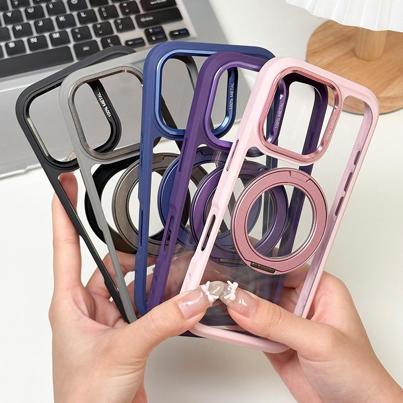 For Apple 13/14/15/16/17 Series Transparent Simple Magnetic Lazy Stand for IPhone Case
