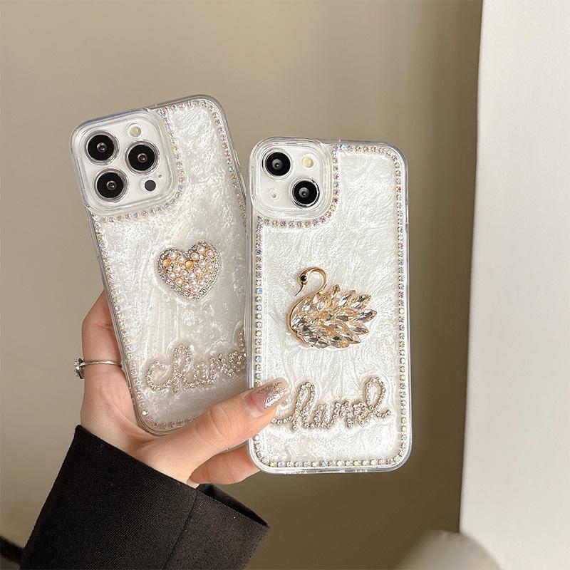 For IPhone 16 Rhinestone Swan Mobile Phone Case for IPhone 17 Promax Luxury Love Letters Fine Holes All-inclusive Soft