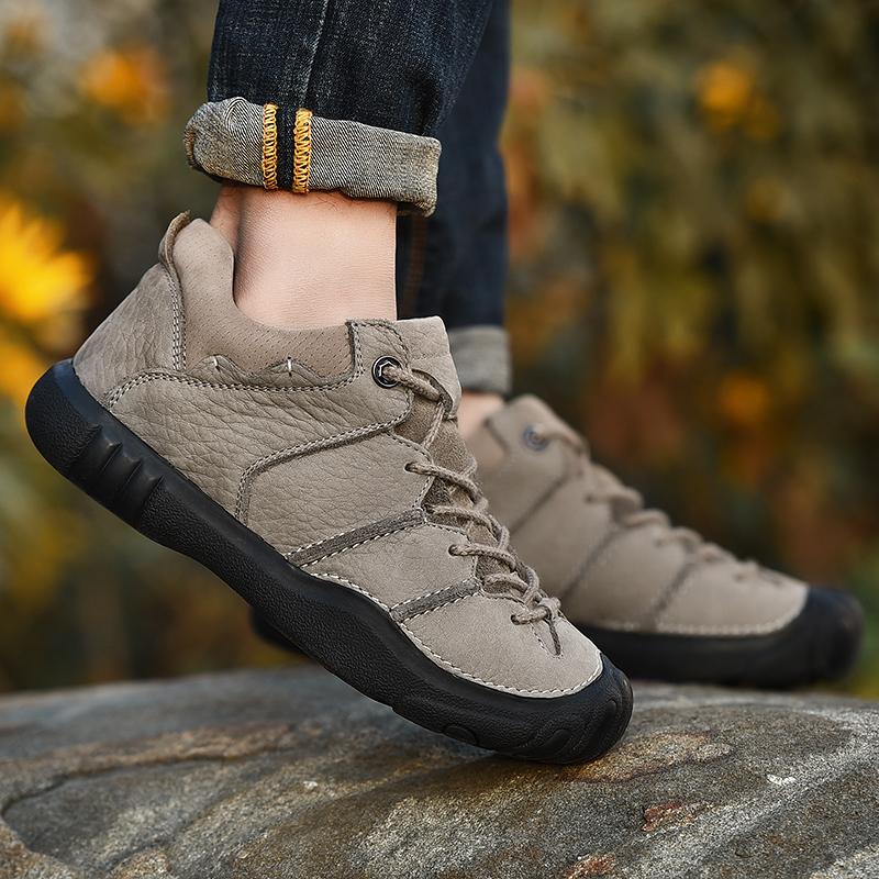 Fashion Hiking Shoes Men Genuine Leather Cowhide Trekking Boots Trend Black Sports Top Quality Outdoor Walking Sneakers Non Slip Casual