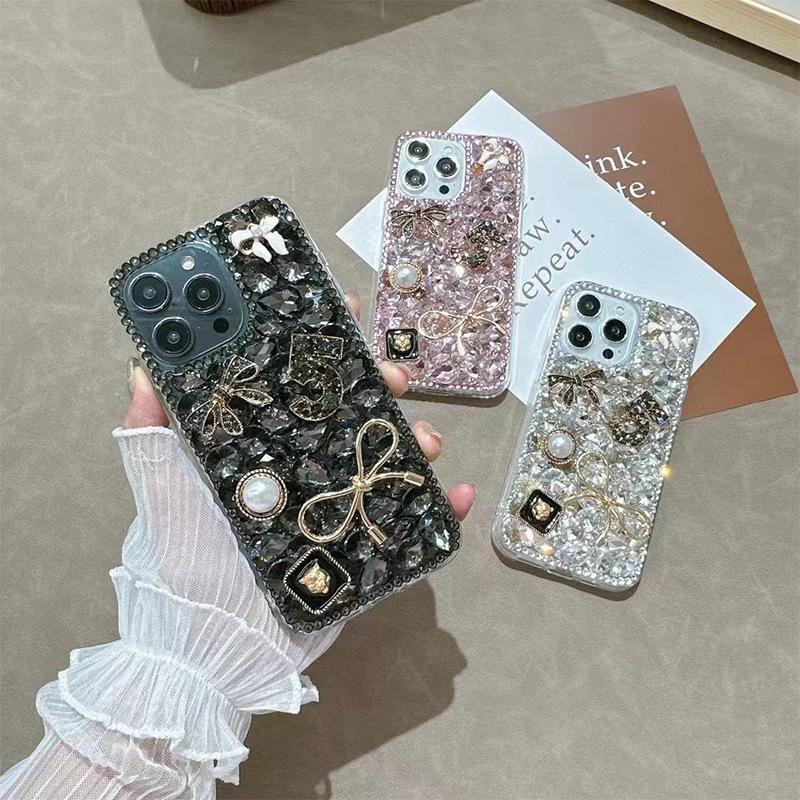 For IPhone17Promax Mobile Phone Case for Apple 14 Rhinestone Bow 15 Luxury Full Diamond Pearl Tiger Head for Women