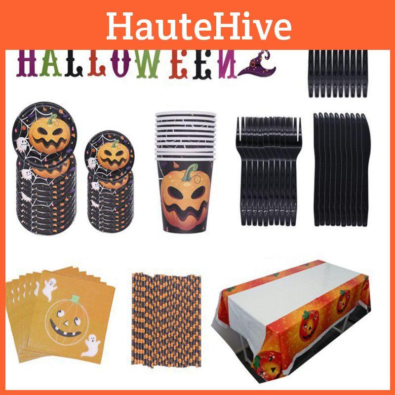 Halloween Party Decoration Supplies Including Pumpkin Tablecover And Straws**