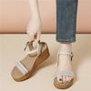 Modă 2024 Vară Noi Sandale cu Toc Înclinat și Strass-uri pentru Femei Pantofi Tricotați la Modă pentru Femei Sandale cu Talpă Groasă Pantofi cu Toc Înalt Femei