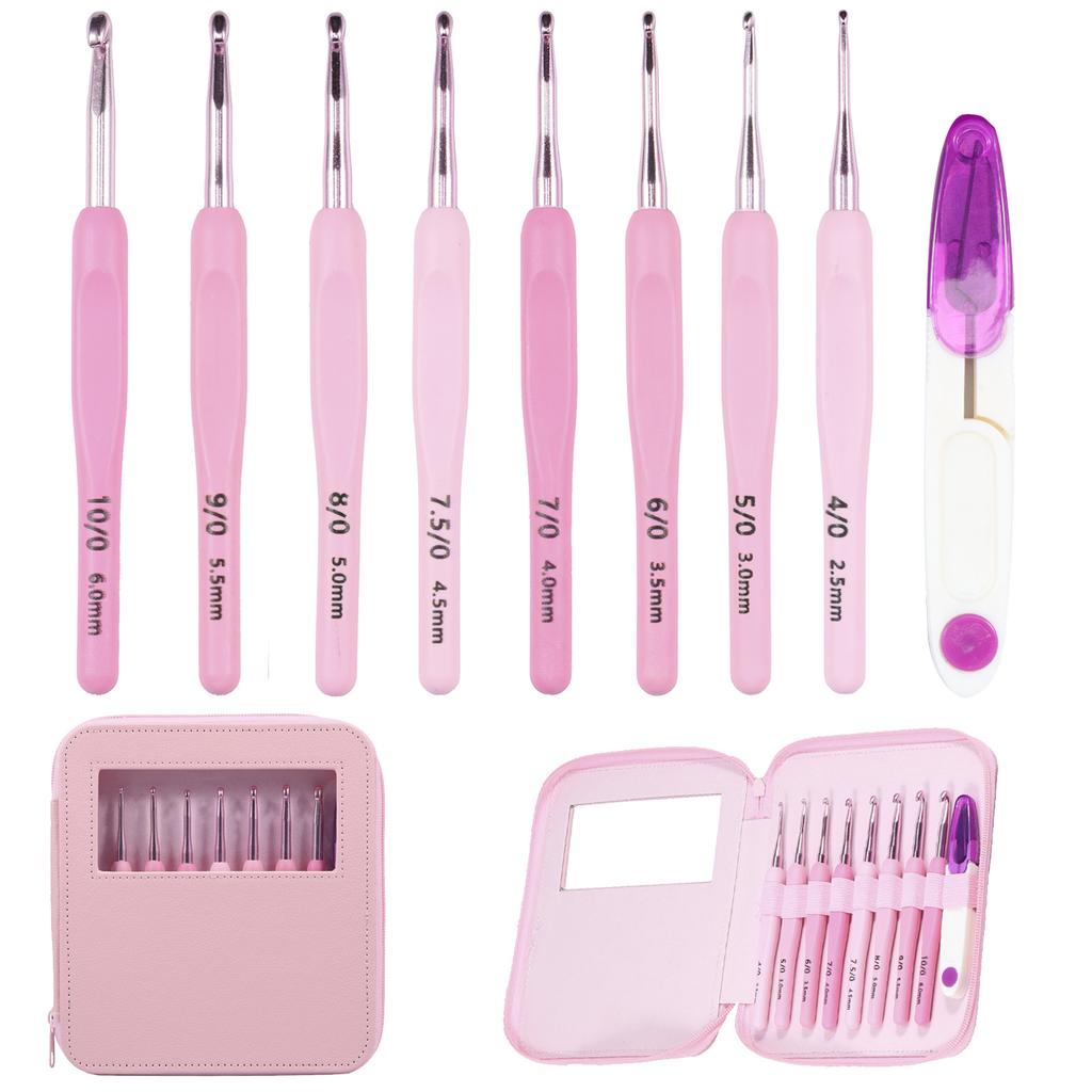 8Pcs Crochet Hook Set 2.5 to 6mm Crochet Hooks Kit Ergonomic Soft Handles Crocheting Needles Kit Knitting Tool Pink Crochet Hook