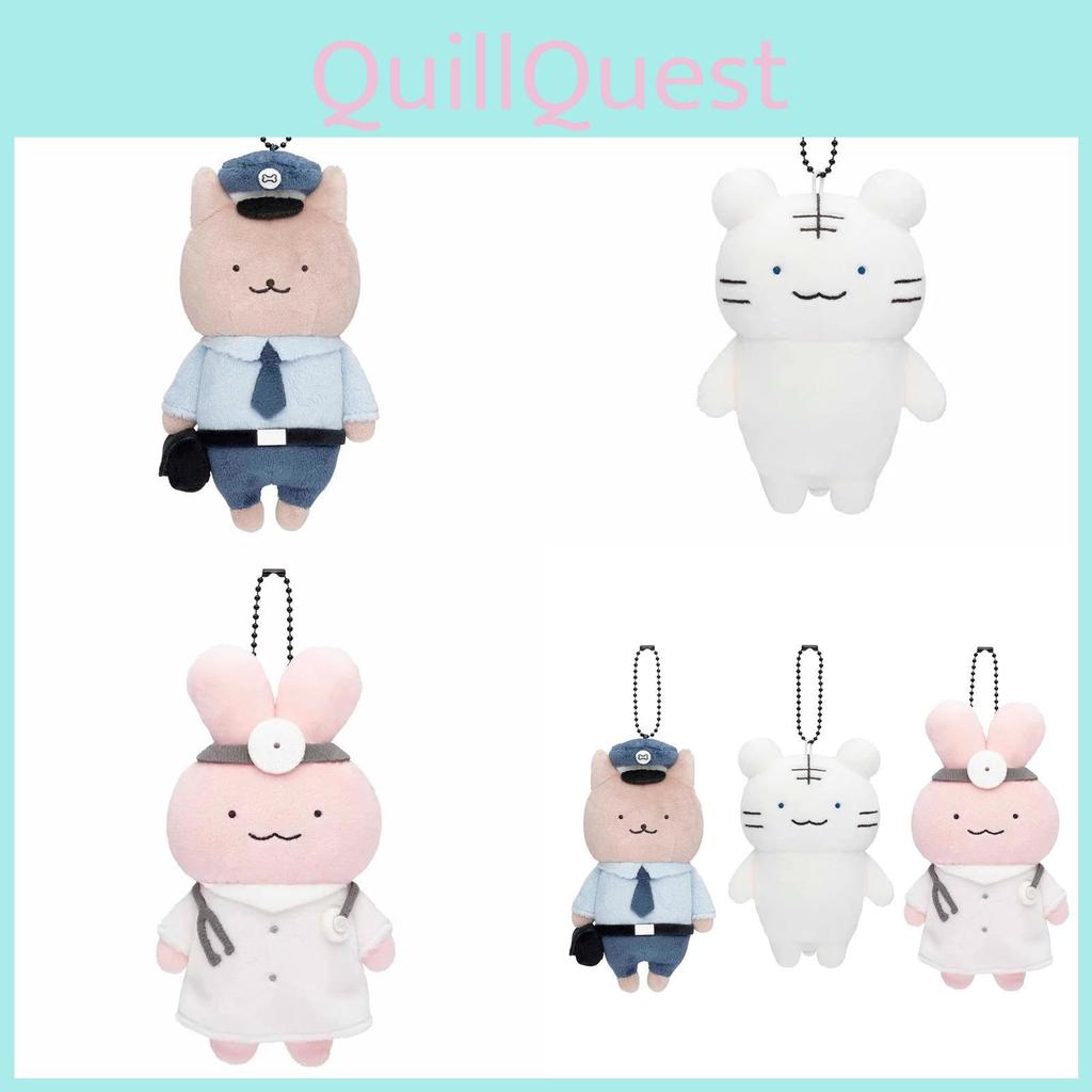 This plush keychain features a cute animal design, depicting a white tiger or bunny dressed as a doctor, crafted from ultra-soft short pile plush material. Measuring approximately13cm in height, it offers a lightweight and durable accessory. Ideal for attaching to bags or keys during daily commutes or school activities. Wipe clean with a damp cloth to maintain its softness and appearance.