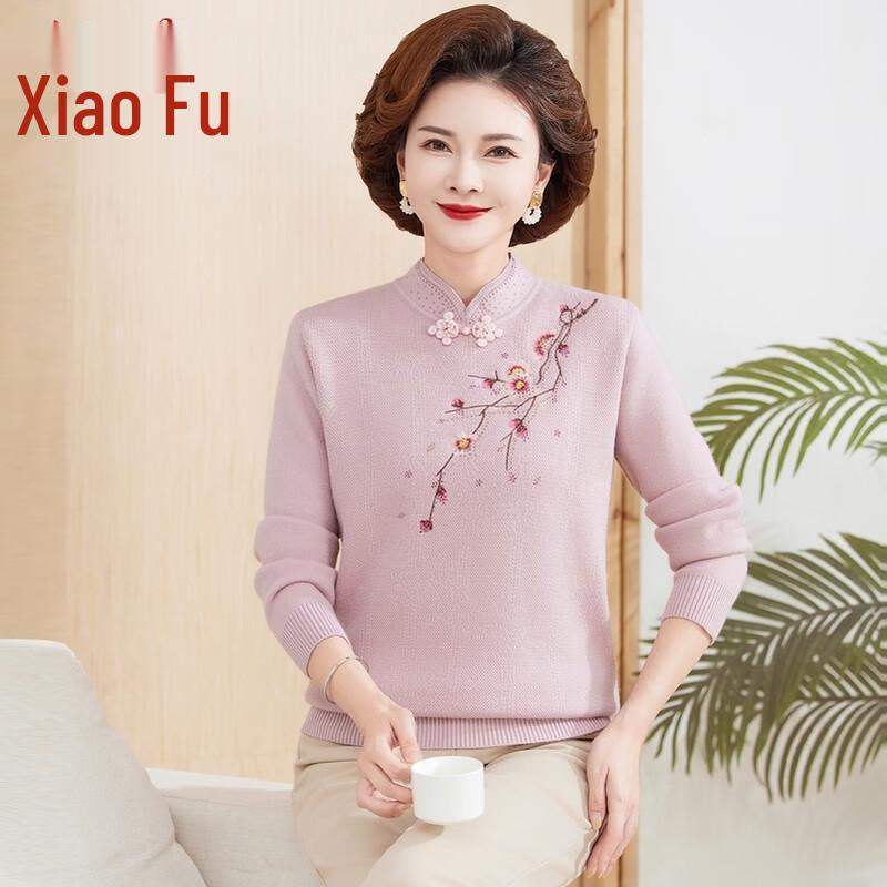 Women's Qipao Collar Embroidered Plush Winter Sweater