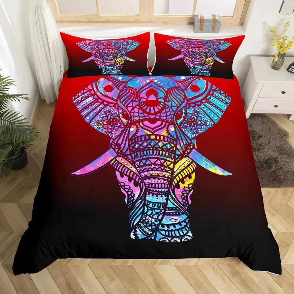 Elephant Duvet Cover Set Full,Boho Vintage Luxury Bedding Set Colorful Exotic Mandala Quilt Cover Tribal Ethnic Comforter Cover