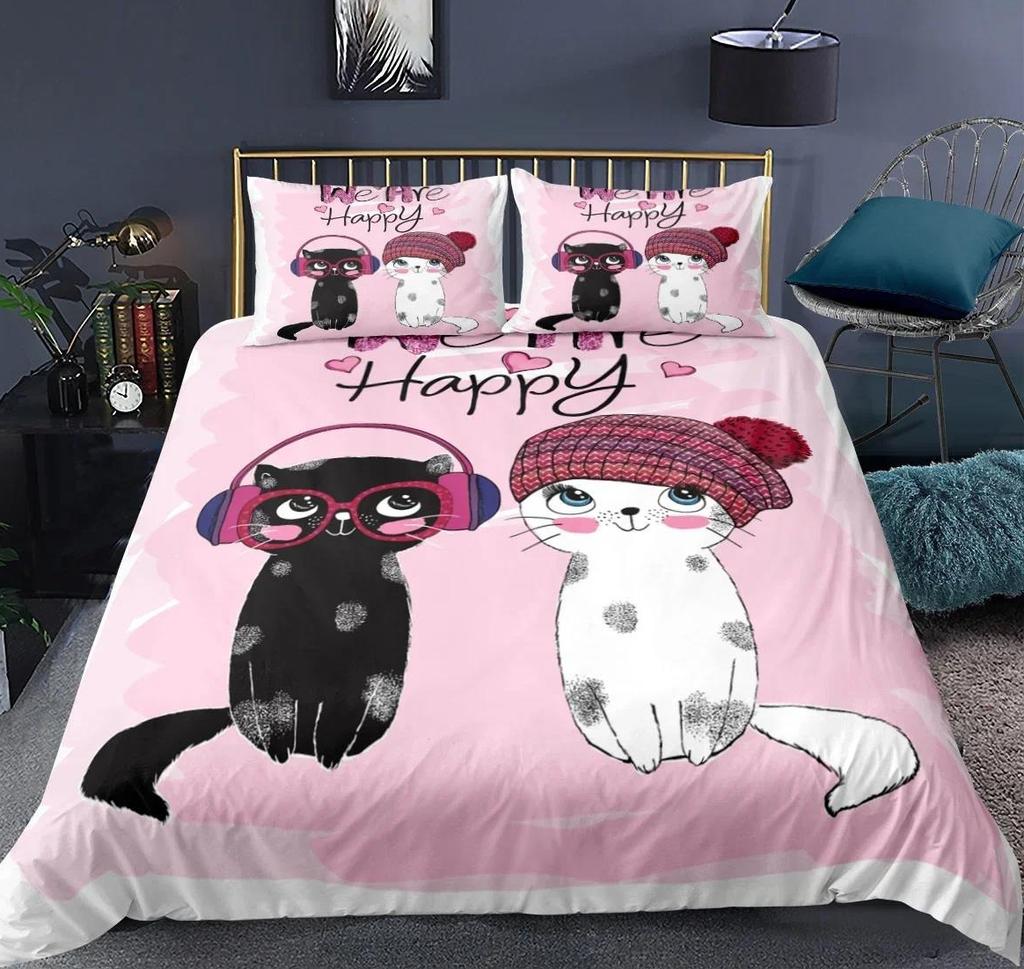 Cartoon Cute Cat Down Duvet Cover 3 Piece Set Single-Sided Printing Bedding Set Comfortable Quilt Cover With 2 Pillowcases