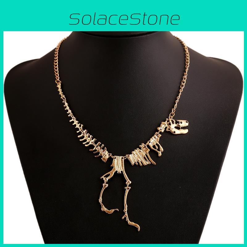 This dinosaur skeleton pendant necklace features an alloy construction with electroplated finishes in gun black, gold, silver, or rose gold, it includes a detailed animal-themed design and a chain style resembling a whip. Ideal for travel, casual wear, or as a gift, it supports everyday styling and special occasions. The alloy pendant is easy to clean with a damp cloth, ensuring lasting appearance.