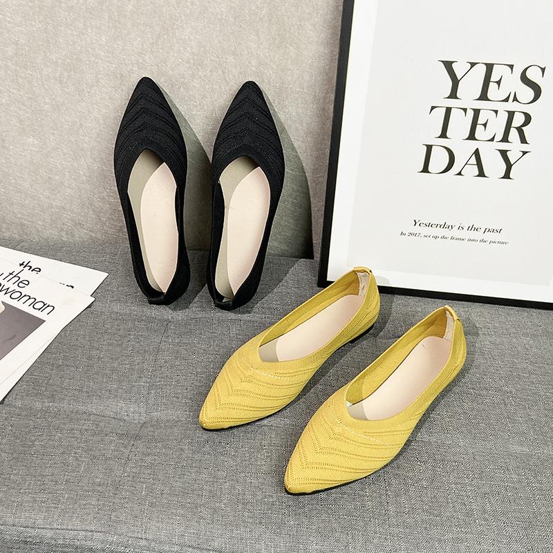 Fashion 2025 Fashion Breathable Mustard Yellow Ballet Flats Pointed Toe Slip On Loafers Women Casual Soft Rubbler Sole Boat Shoes